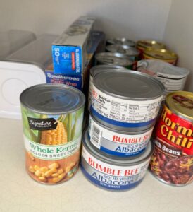 Rotera ditt konserverlager genom att placera nyare inköp längst bak och använda äldre varor först.